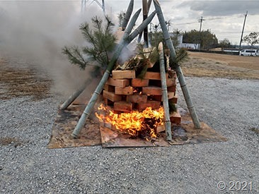 元旦に使った門松を解体し、廃材などで組みました。
