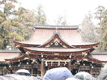 神社の境内に着く頃には雪が降っていました。